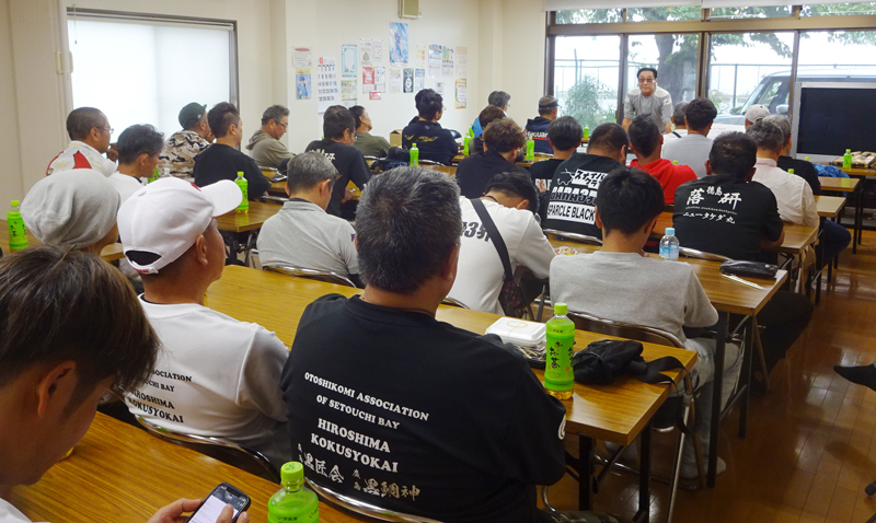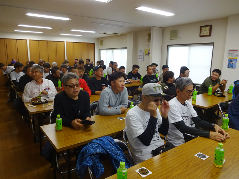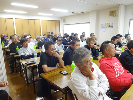 | 倉田委員長より最後の挨拶。沖堤防釣り禁止が全国的に増えてきていますが、もう駄目だとあきらめずに、 沖堤防解放の火を消さないでください。いつか好転する日が来ると信じて頑張りましょう。というスピーチでした。 |