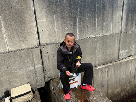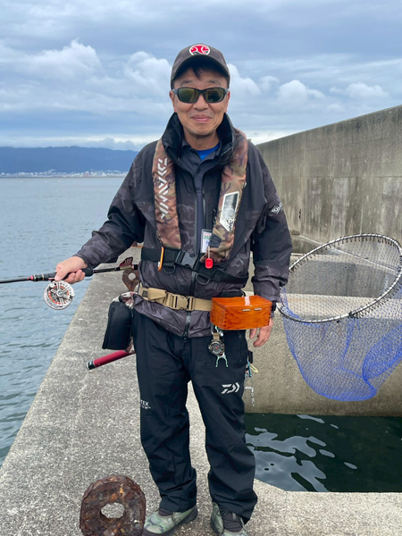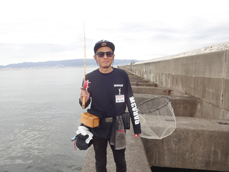 浜田選手優勝コメント 3回目のアワード、今回はBAA武庫一大会からの出場でした。 北港スリットは大阪万博開催中は釣行不可、大会前は数日しか釣行できない中、 下見に行けた事は大きなアドバンテージになったと思います。 下見で良かった手摺面、魚がチラチラ見える柱前と柱間を目印仕掛のフジツボで攻め、 1キロ前後を2枚確保、スタートダッシュに成功しました。 その後、追加なく終了1時間前にヤイタ面に移動すると少し風が当たって手摺面よりは良い感じ。 ケーソン継目、1ヒロ半の止まりアタリで600g級をゲット!小型ですが今年1番嬉しいチヌとなりました。 北港スリットで再び釣りが出来た事に感謝です。 大会に携わってくださった皆様、本当にありがとうございました。 浜田 肇 |
