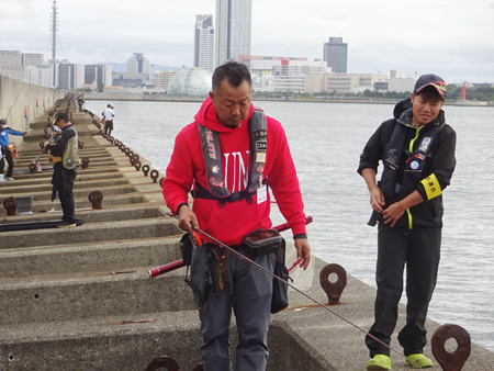 技と魂で挑め。落とし込み日本一を決める、最終決戦が始まる 2025年10月19日落とし込み釣りのクライマックスイベントAward2025が、 全国の選考大会にて選ばれた21名の選手が一堂に会したこの大会は、まさに落とし込み釣りの全国大会と 今回の大会エリア、北港夢洲は、今年の4月より開幕された大阪・関西万博の開催地として全国的に有名になった場所であります。 7時過ぎにレーダー付近に上がった選手たちは、全員驚きの声を上げていました。 7時25分大会がスタートしましたが、予想とは裏腹にチヌのアタリがほとんどありません。 第2位の甲斐選手は、岐阜県からの参加です。甲斐さんの場合は、開始早々ではなく開始より1時間ほどしてから 第3位の山崎選手は、広島からの参加です。 すれ違う選手たちは、見えているのに釣れない状況に苦戦しているようで、 残念ながら釣果の出なかった選手もおられましたが、各選考大会で100名近くの参加者の中から 1名又は2名が、Awardに出場できる権利を獲得します。これはかなり凄いことだと思います。 Awardに参加できるだけで、とても栄誉あることだと思います。 私たち、Award実行委員会は、参加選手の皆さんに敬意を称したいと思います。 最後になりましたが、開催に当たり、受付の設営、安全への配慮、表彰会場の手配など諸々、 |